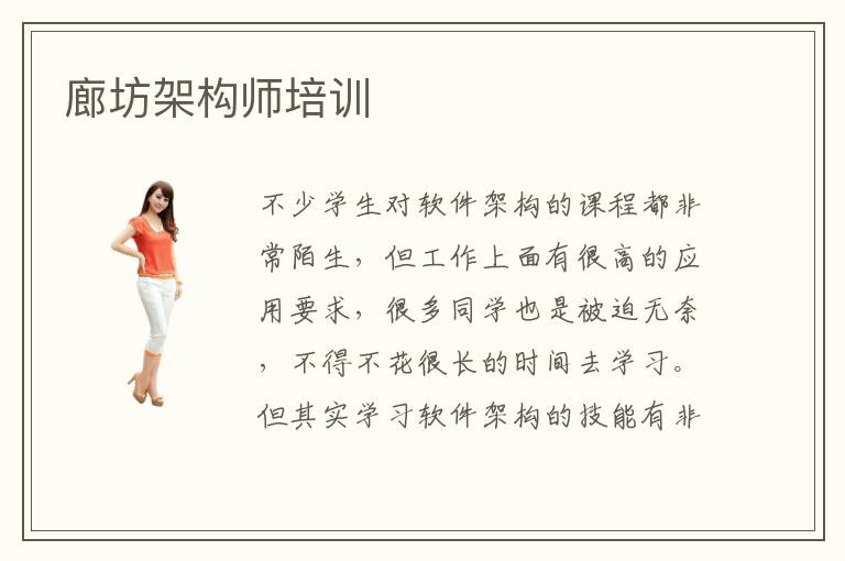 不少学生对软件架构的课程都非常陌生,但工作上面有很高的应用要求,很多同学也是被迫无奈,不得不花很长的时间去学习。但其实学习软件架构的技能有非常多的方法,比如可以参与廊坊架构师培训,专业的辅导老师会将细致的技术内容介绍给大家,学生在报名之后,可以不断完善自己的知识结构,也会把很多复杂的基础架构师培训任务解决掉。架构师培训的费用大概要1万到2万,不过需要注意,并不是每一个学生都有效果,有些学生考虑的是劣质的培训机构,,培训的速度非常慢,成果也不太理想,大家要谨慎筛选。有一部分同学已经投入了比较长的时间,但似乎看不到效果,这时选择专业的辅导班,老师会进行详细的指导,会有比较显著的提高,发挥空间将会变得更开阔。