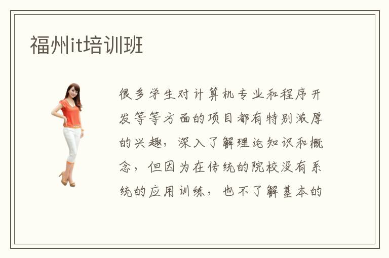 很多学生对计算机专业和程序开发等等方面的项目都有特别浓厚的兴趣,深入了解理论知识和概念,但因为在传统的院校没有系统的应用训练,也不了解基本的操作方法,工作起来会很吃力。有些同学很想要改善个人的工作能力,希望在毕业之后,找到比较好的工作,这时不妨看看福州it培训班,经过老师的多层次教学,会有更为明显的改进。it培训班如何选择,应该考虑的是培训班的指导优势、教师的能力、辅导方法和教学内容等等,有些培训班确实特别专业,有细致的辅导课程,而且每个阶段都有不同的指导方案,学生完成这些训练后,会有很大的改进。it培训班费用大概要花5000到1万之间,但是每个培训班的收费标准不同,主要看这些培训班的教学成果和口碑。