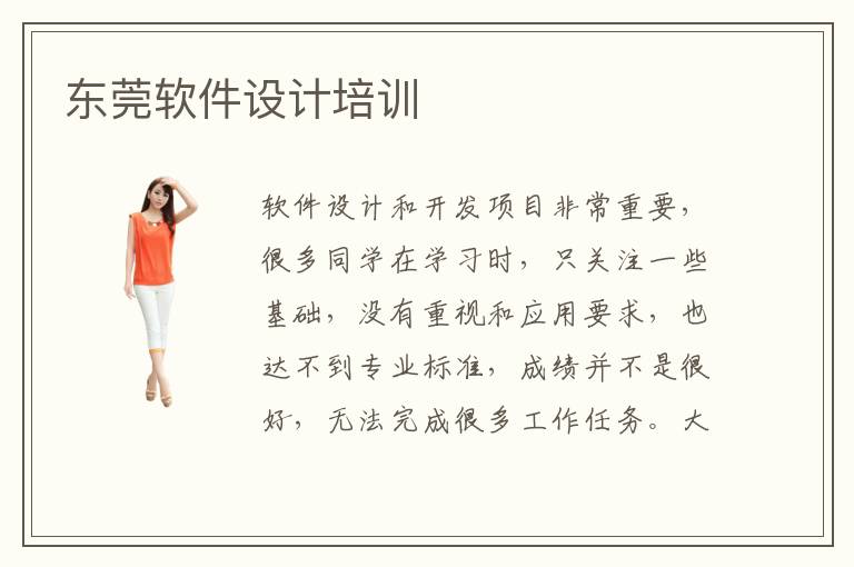 软件设计和开发项目非常重要,很多同学在学习时,只关注一些基础,没有重视和应用要求,也达不到专业标准,成绩并不是很好,无法完成很多工作任务。大家面对问题的时候,不妨多多转化思路,调整一下学习的方法,除了自学以外,还可以报名东莞软件设计培训。专业的辅导老师会指导大家找到正确的学习方案,从简单的课程到高水平的课程,一步一步进行训练,争取更高的水准。软件设计入门非常重要,有一部分同学才刚刚接触这些专业领域的知识,连基本的概念都不知道,更不要说高难度的应用。而辅导老师会把大量的入门课程呈现给大家,同学的基础会更加扎实,业务能力也会变得更强,也能为将来的学习铺平道路。软件设计的小班培训很有用,大家看不到学习效果的时候,可以适当关注。