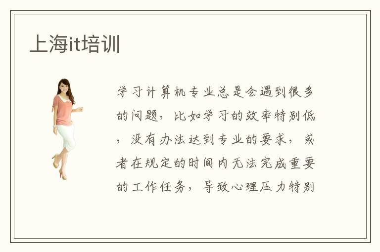 学习计算机专业总是会遇到很多的问题,比如学习的效率特别低,没有办法达到专业的要求,或者在规定的时间内无法完成重要的工作任务,导致心理压力特别大,甚至存在很多负面情绪。若大家有一些学习方面的困惑,可以参加上海it培训,专业的辅导老师都会帮助大家化解各种各样的学习挑战,也会克服各种学习的障碍,使大家的学习成果都非常理想。一部分学生对计算机专业的业务要求理解并不是很充分,而且专业的学习思路不够活跃,影响学习的状态和效率。而选择辅导班it教程之后,就不用担心类似的状况。it小班辅导确实有很好的效果,不少同学的成绩都很差,学习能力不强,很难提高个人的竞争水平,而老师会也会及时找到问题所在,然后通过有效的方式处理。