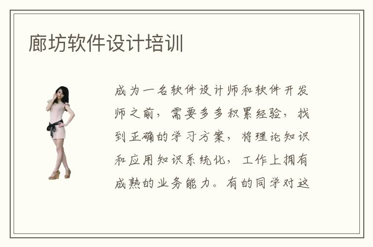 成为一名软件设计师和软件开发师之前,需要多多积累经验,找到正确的学习方案,将理论知识和应用知识系统化,工作上拥有成熟的业务能力。有的同学对这些课程理解相当陌生,一直处于懵懂的状态,找不到突破方案,难免出现很多压力。如果大家想要得到显著的改善,可以报名廊坊软件设计培训。专业的辅导班会将有趣的课程带给大家,而且通过清晰简单的语言分析复杂的技术内容。软件设计的前途非常开阔,首先是薪资待遇比较高,许多工作者刚刚参加职场工作,就能达到1万到2万的待遇。软件设计培训有效果吗,软件培训机构当然有很好的培训效果,因为老师会快速梳理重点,也会指定一些重要的科目,确保大家在短期内掌握重要的应用,完成软件设计的项目。