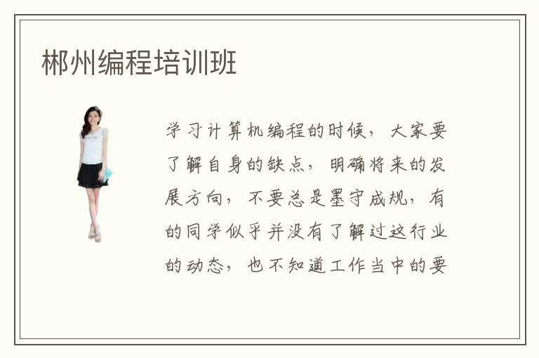 学习计算机编程的时候,大家要了解自身的缺点,明确将来的发展方向,不要总是墨守成规,有的同学似乎并没有了解过这行业的动态,也不知道工作当中的要求,工作上会非常吃亏。郴州编程培训班可以帮助学生分析前沿的技术,分享许多学习的经验和思路,这样同学就不会满足于现状,也不会局限于当下的学习阶段,而是继续深入了解更多重要的技术。编程培训班效率如何,多数编程辅导班的效率都很不错,老师会介绍个性化的课程,使同学的知识体系更全面,在工作当中能力变得更强。编程有哪些课程,编程语言的课程相当多,包括计算机编程语言的开发,程序设计,编程语言功能应用,操作系统开发等等。这些内容都非常重要,需要大家细心掌握,从而在工作上有比较大的突破。