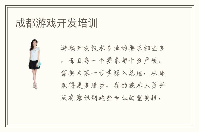 游戏开发技术专业的要求相当多,而且每一个要求都十分严峻,需要大家一步步深入总结,从而获得更多进步。有的技术人员并没有意识到这些专业的重要性,也不了解当下的发展要求,很多时候都过于迷茫,找不到突破口,容易陷入困境。成都游戏开发培训学校会培养大家的专业应用能力,介绍众多应用的项目,使大家接触更广的知识领域,开拓学习思路,然后学习到很多新的应用技术。游戏开发培训机构如何选,要考虑的是培训班的辅导能力、教育质量、培训方向等等。如今软件技术培训班越来越多,内容非常丰富,大家可以适当关注,争取跟上时代的步伐。游戏开发容易找到工作吗,游戏开发辅导班的教育质量比较高,可以帮助大家很快找到好工作,不用担心被同行淘汰的问题。