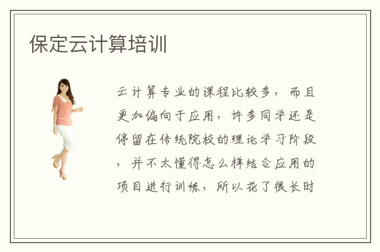 云计算专业的课程比较多,而且更加偏向于应用,许多同学还是停留在传统院校的理论学习阶段,并不太懂得怎么样结合应用的项目进行训练,所以花了很长时间还是看不到理想的进步,其实大家也不必害怕,因为还有很多培训机构,可以让大家理解真正工作当中的要求,然后将自己所学的理论知识融入到应用项目当中,获得更加理想的进步。保定云计算培训云计算培训学校并不会因为只追求课程的难度,而是会根据大家的能力设置对应的课程,而且每个同学的能力都不一样,所以老师就会进行个性化的课程安排。云计算培训有什么课程,主要有软件开发、计算机专业应用、网络基础等等。云计算培训优势相当多,比如会由浅入深,带给大家更多专业的技术课程,然后营造良好的学习氛围,使学生有更强的学习动力。