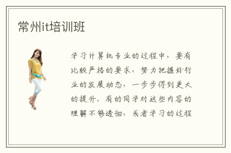 学习计算机专业的过程中,要有比较严格的要求,努力把握好行业的发展动态,一步步得到更大的提升。有的同学对这些内容的理解不够透彻,或者学习的过程中没有合适的方向,长时间都看不到进步,难免会产生许多压力。而报名专业的常州it培训班后,老师就会详细介绍这些重要的课程,分析同学会面对的瓶颈,一步步补充未知领域的知识。it培训班哪些更好,其实要看不同培训班的教学方式,培训的目标以及师资力量等等。有些学校的教学重点非常明确,目标也很清晰,每个阶段都能帮助大家获得进步。it培训班有效率吗,多数培训班都有很好的效率,虽然说上课时间只有几个月而已,但是老师会快速利用这段时间,帮助同学解答各种难题,确保每一个同学都有比较大的改进。