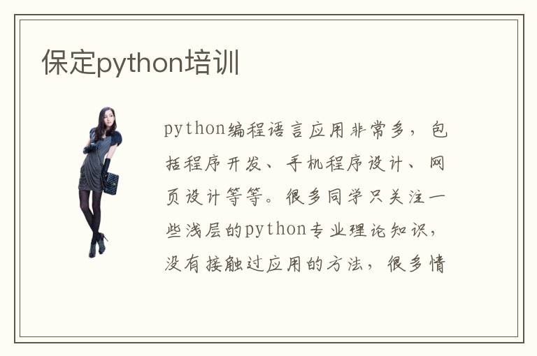 python编程语言应用非常多,包括程序开发、手机程序设计、网页设计等等。很多同学只关注一些浅层的python专业理论知识,没有接触过应用的方法,很多情况下只是纸上谈兵,基本很难达到理想中的水平。保定python培训学校会帮助大家分析问题所在,然后开拓学习的思路,确定学习的重点,让学生在应用项目中拥有更加成熟的经验。python培训有用吗,多数python编程培训班都很有用,因为有些课程确实比较无聊,很难让同学感兴趣,导致学习的动力有点少,学习成绩越来越差。不过培训机构会寓教于乐,将许多趣味性的课程呈现给大家。这样同学就能在欢乐而有趣的氛围下掌握这些知识,记忆也会更加深刻。python远程培训有多种优势,包括时间安排灵活,上课形式也比较轻松。