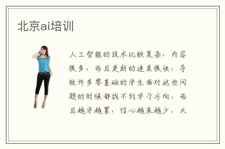 人工智能的技术比较复杂,内容很多,而且更新的速度很快,导致许多零基础的学生面对这些问题的时候都找不到学习方向,而且越学越累,信心越来越少。大家如果想快速提高人工智能专业应用的能力,都可以参加北京ai培训。老师一般会手把手进行教学,帮助大家分析人工智能的行业趋势,也会结合大家的专业应用能力和学习阶段设置不一样的课程,确保大家短期内就有很大的进步。另外ai培训课程也非常全面,不管是理论课的还是应用课程,都可以让同学有非常大的收获和进展,以后学习人工智能也会有更明确的方向。ai培训的优点主要在于不仅会介绍人工智能方面的理论和应用,而且还会传授许多学习的方法,使AI专业的同学都能迅速挖掘自身的不足,得到更大的进步。