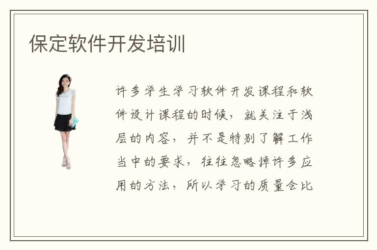 许多学生学习软件开发课程和软件设计课程的时候,就关注于浅层的内容,并不是特别了解工作当中的要求,往往忽略掉许多应用的方法,所以学习的质量会比较低。不过有很多种方法可以改变,比如参加保定软件开发培训。大家可以先对比各种不同的培训班,然后找到适合自己的课程,从而发挥出更为好的水平,得到更大的提升。软件开发培训有没有优势,软件开发辅导班的主要优势就是可以帮助大家找到许多不足之处,然后明确学习的重点和方向,为同学解答疑惑,而且同学一旦有任何关于软件方面的不懂的问题,都可以马上请教老师,从而解决各种难题。软件开发网络课程的优势相当多,无论是刚刚学习软件专业的小白,还是已经在行业中有多年经验的工作者,都可以报名这些课程。