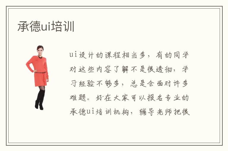 ui设计的课程相当多,有的同学对这些内容了解不是很透彻,学习经验不够多,总是会面对许多难题。好在大家可以报名专业的承德ui培训ui培训机构,辅导老师把很多重要的训练项目带给大家,分享很多学习的看法,在这样的学习环境下,同学会有更加开阔的视野,也能得到更多进步。ui网络培训有多种好处,首先老师和同学可以在互联网平台上交流,分享专业的学习经验,分析学习的方法和应用的思路。有的同学时间很紧迫,但老师会尊重学生的时间安排,随时设置训练项目,只要同学有时间,都可以打开电脑学习。ui有什么作用,ui设计的应用范围很广,可以让网络页面变得更加美观,功能更加清晰,这样有利于大家优化用户的体验。假如页面设计不太好,界面很难看,使用不够便捷,用户可能就不太满意。