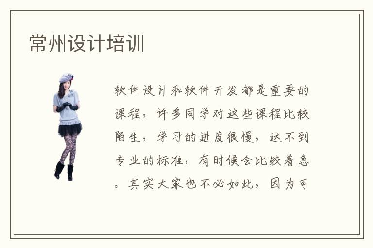 软件设计和软件开发都是重要的课程,许多同学对这些课程比较陌生,学习的进度很慢,达不到专业的标准,有时候会比较着急。其实大家也不必如此,因为可以报名专业的常州设计培训设计培训学校。老师都比较厉害,非常了解同学的问题,也会帮助同学挖掘未知领域的知识,确保每一位同学都可以快速获得提高。设计培训学校哪些好,由于大家注重的因素不太一样,所以哪个好很难判断。比如有的同学非常注重师资力量,可以对比每一个软件设计培训设计培训机构的老师的水平,看看这些老师的工作能力和教学经验。另外,有的同学非常注重教学口碑,不妨咨询一些已经报名的学生,看看他们对学校的评价。软件设计专业的趋势非常迅速,工作要求也比较高,大家不能只满足于当下,还是要继续学习更多深层次的软件技术。