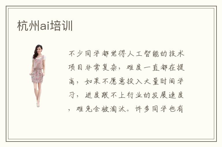 不少同学都觉得人工智能的技术项目非常复杂,难度一直都在提高,如果不愿意投入大量时间学习,进度跟不上行业的发展速度,难免会被淘汰。许多同学也有清晰的认识,但是没有找到突破方向,所以常常是有心无力。如果想得到改进,一方面要多花时间,另外也可以报名杭州ai培训,老师会进行严格教学。ai培训辅导方式非常多,比如网络辅导,1对1辅导,大班辅导,小班辅导。可能很多同学都觉得小班辅导的压力太大,老师会不停盯着自己看,但这种方法的针对性更强,也更有效率。ai工程师的发展前途相当不错,有些ai工程师工作几年后,就能够熟练掌握大量的人工智能应用,也能得到满意的工作。但也有工程师刚刚起步,什么都不懂,只能拿到一个起薪的标准。