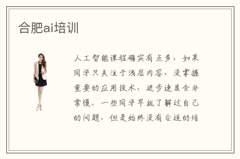 人工智能课程确实有点多,如果同学只关注于浅层内容,没掌握重要的应用技术,进步速度会非常慢。一些同学早就了解过自己的问题,但是始终没有合适的培训机构,所以会很被动。合肥ai培训学校会分享很多经验,提供多种学习的方案,帮助同学制定由浅入深的培训计划,这样同学的进步会明显的多。ai培训费用多少钱,人工智能辅导班的大概学费是6000元到20000元,其实在学习人工智能系统时,大家要尽量选择一些优质的老师,这样学习的方向会更加明确,效率会明显提高。ai有哪些工作岗位,主要有数据挖掘工程师,大数据分析师,人工智能开发专员,而且本专业的技术人员还要学习很多其他学科的领域,因为人工智能和其他专业领域往往也会密切相关。如果个人成绩不好,很难获得进步。