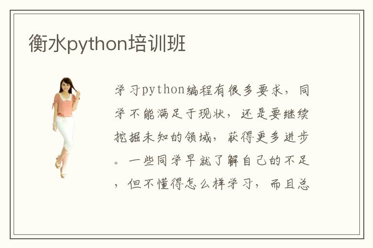 学习python编程有很多要求,同学不能满足于现状,还是要继续挖掘未知的领域,获得更多进步。一些同学早就了解自己的不足,但不懂得怎么样学习,而且总是掉以轻心,无法获得满意的成果。衡水python培训班会分享很多专业的学习方法,提供多种训练的项目,而且会通过趣味性课程展示复杂的技术,这样学员也可以沉浸其中,掌握很多重要知识。python培训班教学质量怎么样,多数培训班的教学质量都不错,老师可以提供手把手教学方案,关注同学的学习进程,而且也会及时做好监督,使得同学能达到专业标准,取得更多的优势。python工程师前景如何,编程工程师有很好的前景,虽然说现在的大学毕业生越来越多,但市场的需求量大,找工作也比较简单,所以同学们应该把握住这样的机遇。
