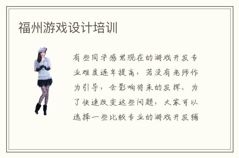 有些同学感觉现在的游戏开发专业难度逐年提高,若没有老师作为引导,会影响将来的发挥。为了快速改变这些问题,大家可以选择一些比较专业的游戏开发辅导班,由老师来安排训练,这样进步会快很多,而且学习效果也会更好。福州游戏设计培训设计培训学校的优势很明显,比如课程计划非常全面,可以让同学按部就班掌握这些知识。游戏设计培训1对1培训有多种好处,包括教学质量高,针对性强,课程安排也十分严谨。很多同学刚开始接触这些课程,训练的时间比较短,所以成绩不太好,但是得到老师的强化训练后,成绩就会明显变好。游戏设计工程师的专业课程主要有游戏后端开发,前端设计,功能设计,场景制作等等,这些都是重点的内容,同学要好好花时间积累,然后应用到工作上。