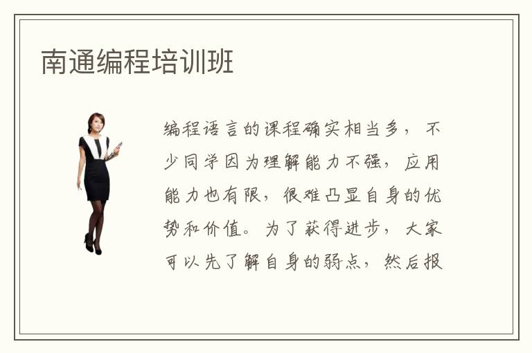 编程语言的课程确实相当多,不少同学因为理解能力不强,应用能力也有限,很难凸显自身的优势和价值。为了获得进步,大家可以先了解自身的弱点,然后报名一些优质的辅导班,选择适合自己的课程,在老师的指导下获得更多提升机会。南通编程培训班的收费比较合适,大概5000~两万五千万便可报名,不过有些同学为了提高效率,选择1对1的课程,费用会上升。编程培训班课程严不严格,其实在挑选培训班时,大家可以着重关注教学内容,辅导方向以及课程重点,有些学校确实很重视理论,也有些学校会安排大量的编程应用训练课程,所以大家在学习期间会有很强的针对性,也能取得更多突破。编程专业的要求很高吗,编程专业的要求越来越高,因为技术人员要完成很多应用项目,包括程序设计,网络优化等等。