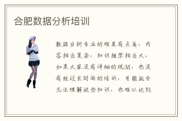 数据分析专业的难度有点高,内容相当复杂,知识框架相当大,如果大家没有详细的规划,也没有经过长时间的培训,可能就会无法理解这些知识,也难以达到工作要求。一些同学早就认清自己的不足,但找不到合适的方向,所以会有一点点困惑。这时不妨报名合肥数据分析培训结构,由老师安排重点课程,这样学习起来就会轻松很多,思路也会更加明确。数据分析培训作用大不大,数据分析辅导班的作用很明显,老师会突出学习的重点,培养大家的专业思维,解答很多专业方面的疑惑,所以大家有兴趣的话,都可选择这样的辅导机构。数据分析现状怎么样,数据分析的行业现状其实很好,就业方向很多,技术工程师可以应聘大数据运维专员,爬虫工程师,数据分析师等等岗位。
