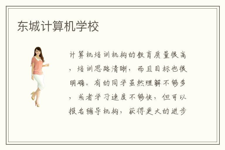 计算机培训机构的教育质量很高,培训思路清晰,而且目标也很明确。有的同学虽然理解不够多,或者学习速度不够快,但可以报名辅导机构,获得更大的进步。东城计算机学校,计算机学校好不好,计算机学校的教育水准一般很高,培训思路清晰,可以帮助很多同学改善技术竞争力,虽然不少同学刚刚起步,对一些理论的理解了解不充分,也不知道怎么样去应用,导致成绩并不是特别理想。而报名辅导机构之后,往往就能够深入了解很多前沿的技术,从而获得非常大的改善空间。计算机学校上课时间多不多,一般情况下,同学可以报名网络辅导班,利用碎片时间就能上课,也可以选择周末上课或者晚上上课。不过在上课期间,要有比较严谨的态度,不要随便对待,以免影响学习效果。