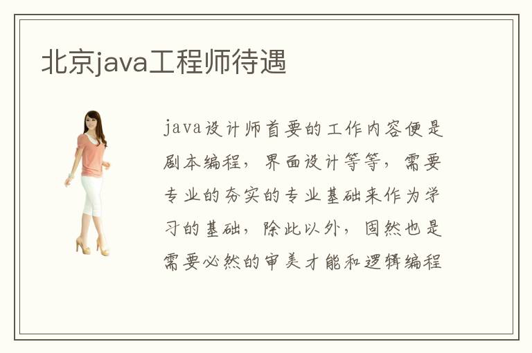 java设计师首要的工作内容便是剧本编程,界面设计等等,需要专业的夯实的专业基础来作为学习的基础,除此以外,固然也是需要必然的审美才能和逻辑编程才能,北京科技繁华,具有良多java设计培训机构,北京java工程师待遇大概是在什么水平北京java工程师待遇怎么样北京java工程师待遇水平高吗北京java工程师的工作有没有成长空间北京java工程师待遇推荐电脑学校