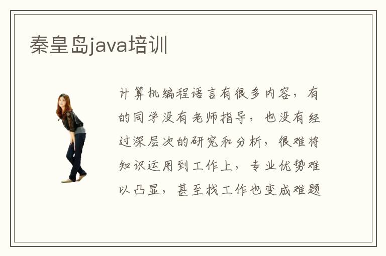 计算机编程语言有很多内容,有的同学没有老师指导,也没有经过深层次的研究和分析,很难将知识运用到工作上,专业优势难以凸显,甚至找工作也变成难题。秦皇岛java培训java培训学校会安排高效率课程,也会提供多种严谨的培训计划,让大家一步步深入到各种深层的领域。java培训零基础难不难,零基础课程确实很重要,因为这些课程涉及很多知识面,学校会由浅入深,一步步提高难度,这样同学很快就能找到适合自己的学习节奏,也有更清晰的学习方向,为将来发展铺平道路。java辅导机构的教学课程相当有用,首先就是这些课程跟同学的学习要求会紧密联系在一起。而且同学有疑惑,可以马上请教辅导班的老师,从而获得更多提高。不过在学习期间,要有详细的规划,找到训练的目标。