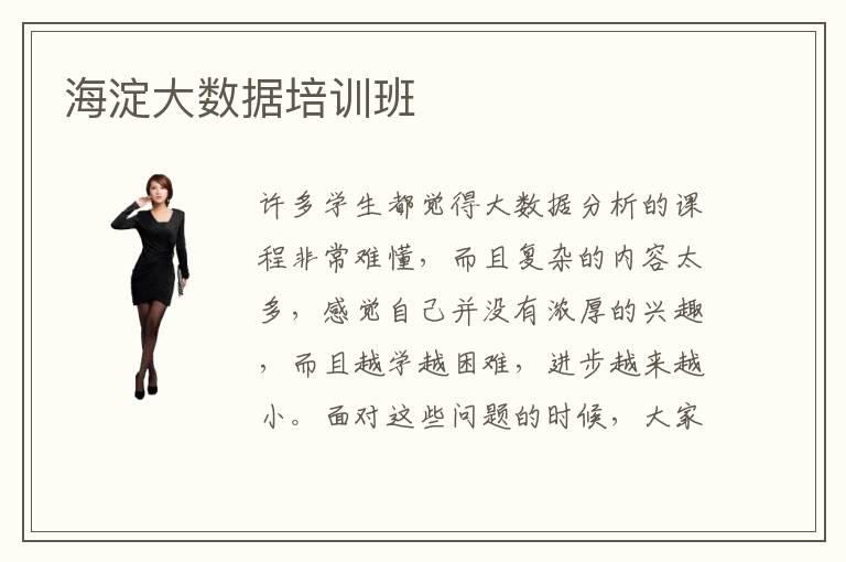 许多学生都觉得大数据分析的课程非常难懂,而且复杂的内容太多,感觉自己并没有浓厚的兴趣,而且越学越困难,进步越来越小。面对这些问题的时候,大家可以参加一些优质的数据培训班的课程,完成老师的训练项目,往往就能够达到工作标准,也能享受其中的快乐。海淀大数据培训班可以制定详细的课程计划,让大家一步步掌握。大数据培训班小班辅导课程有很多优势,首先就是同学得到老师1对1的指导,进步速度会更快。而且在学习期间,老师还会及时监督,确保同学都有更佳状态,不用担心经常开小差的问题。大数据专业有什么课程,大数据专业的课程丰富,如数据库管理,数据库应用,数据分析,数据模型建构。由于这些技术很新颖,同学可能会比较陌生,应该多花时间研究。
