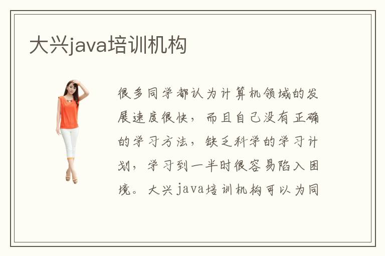 很多同学都认为计算机领域的发展速度很快,而且自己没有正确的学习方法,缺乏科学的学习计划,学习到一半时很容易陷入困境。大兴java培训机构可以为同学整理很多专业的方法,分享很多重要的学习技巧,同时也可以得到提高学习效率,又能够减少很多不必要的烦恼,可谓一举多得。java培训机构的上课时间主要是晚上或者周末,一般坚持三个月到半年就能得到比较大的进步,而且学员们与老师交流机会更多,可以了解更多深层次的内容,有更多改进的机会。java有哪些应用,Java编程应用非常多,比如程序设计、网页开发、网页设计、安卓移动设备、嵌入式软件开发等等。而且最近的技术越来越成熟,还可以应用到许多新领域当中,包括人工智能、大数据分析等等,对计算机等专业的同学来说有重要的价值。