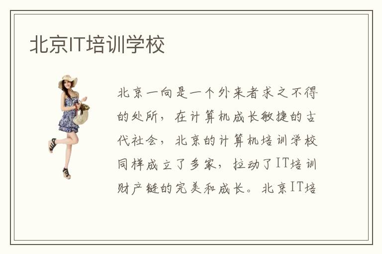 北京一向是一个外来者求之不得的处所,在计算机成长敏捷的古代社会,北京的计算机培训学校同样成立了多家,拉动了IT培训财产链的完美和成长。北京IT培训学校的培训项眼良多,此中也不乏多家企业挑供的对接项眼,学生在进入项眼学习跟进之后,就能获得必然的实践经历。在北京IT培训学校北京IT培训机构学习效力高吗北京IT培训学校有哪些适用性项眼北京IT培训学校推荐电脑学校