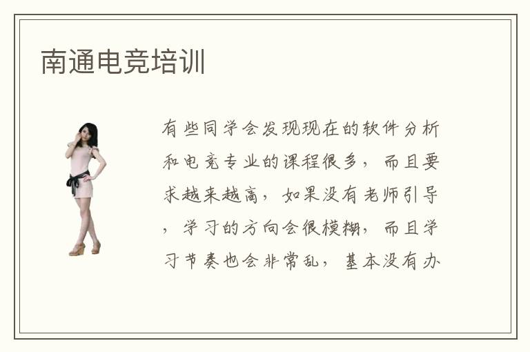 有些同学会发现现在的软件分析和电竞专业的课程很多,而且要求越来越高,如果没有老师引导,学习的方向会很模糊,而且学习节奏也会非常乱,基本没有办法在规定时间内掌握重要内容,一些同学感觉这些专业实在太难超过自己的理解能力,所以想参加南通电竞培训,得到更多老师的系统性操作。电竞培训有哪些课程,电竞培训机构的课程很丰富,有的同学刚刚起步,不知道有哪些内容可以报名,辅导班老师不仅会分享经验,也能帮助学员们扫清各种学习障碍,工作上拥有许多突破,找到更好的表现机会。电竞入门课程自学难吗,电竞入门课程有一些难度,如果只是自学理解起来会比较艰难,也未必能够理解准确,不如有老师指定课程,一方面可以加快学习步伐,另一方面可以理解,更加透彻。