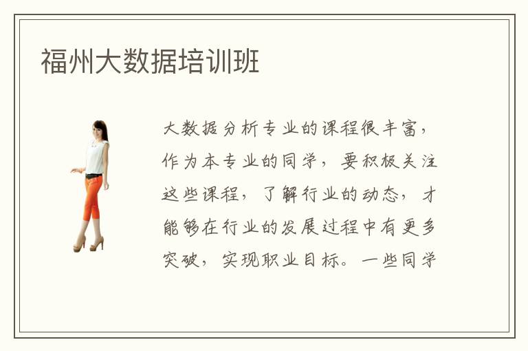大数据分析专业的课程很丰富,作为本专业的同学,要积极关注这些课程,了解行业的动态,才能够在行业的发展过程中有更多突破,实现职业目标。一些同学已经意识到自己在这些领域的不足,但找不到学习的方法,也没有老师指点,很多时间是有心无力。福州大数据培训班会展示不同的训练课程,结合工作应用的领域进行教学,这样同学有任何工作的烦恼或者疑问,都可以和老师讨论。而老师会利用多年的经验,解答同学的各种问题。大数据培训班作用大不大,大数据行业怎么样,大数据分析行业的应用很广,所以前景也十分看好,而且数据驱动智能产品以及精细化的运营都是企业经营的重中之重,如果数据分析师能够为企业完成这些任务,将来前景会非常好,也能实现发展目标。