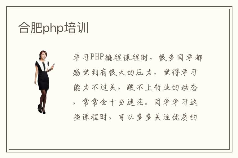 学习PHP编程课程时,很多同学都感觉到有很大的压力,觉得学习能力不过关,跟不上行业的动态,常常会十分迷茫。同学学习这些课程时,可以多多关注优质的辅导班,了解相关的课程,从而达到更好的状态。合肥php培训php培训学校会培养同学的学习能力,改善学习的步伐,使大家跟上行业的发展节奏,争取更大的进步。php培训授课方式往往有网络授课,小班授课、大班授课等等,在选择网络授课时,大家往往可以和老师有更多交流机会,而且也能够将问题通过互联网的方式向老师请教,这样解决问题效率会明显变高。php技术人员的要求越来越多,需要完成软件设计与运维,程序开发,软件架构等等工作的任务。可能很多人还不懂得怎么样去学习,辅导班会解答这些问题。
