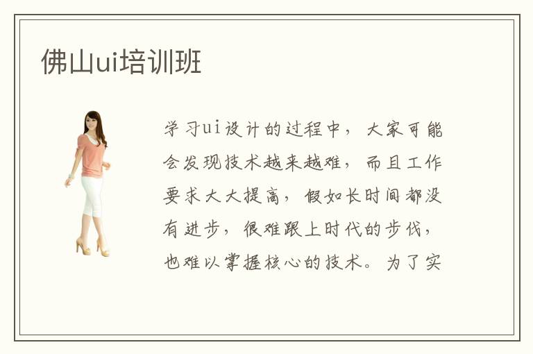 学习ui设计的过程中,大家可能会发现技术越来越难,而且工作要求大大提高,假如长时间都没有进步,很难跟上时代的步伐,也难以掌握核心的技术。为了实现突破,大家可以多花时间,筛选一些优质的佛山ui培训班,选择适合自己的课程,综合掌握ui设计的课程。ui培训班小班课程有很强的针对性,同学但凡有疑问,都可以及时请教老师,从而获得理想的收获。假如基础很不扎实,老师就会安排针对性的入门ui基础课程,若应用能力不过关,老师就会提高ui设计应用课程的比例,确保大家的ui设计水平有更大的提高。ui设计有哪些岗位要求,ui设计的岗位主要有软件架构,界面设计,网页优化等等。在完成这些工作任务的时候,不仅要有熟练的操作,还要保证各项功能不会出现故障。