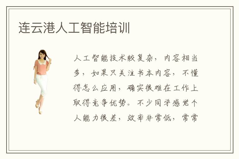 人工智能技术较复杂,内容相当多,如果只关注书本内容,不懂得怎么应用,确实很难在工作上取得竞争优势。不少同学感觉个人能力很差,效率非常低,常常看不到学习的方向,难免会陷入到迷茫的状态。面对同样的状况,可以报名连云港人工智能培训机构的课程。老师非常专业,了解同学的问题,然后量身定制培训项目。人工智能培训1对1培训特别重要,因为老师会个性化安排课程,这样同学能够更快知道自己的不足,有更加清晰的方向,帮助同学摆脱学习的困惑,虽然有些技术课程很难,但老师依然会陪伴大家,一步步坚持学习下去,争取更大的提升。人工智能有什么样的课程,人工智能的课程相当多,比如云计算,深度学习,传感数据,场景建模,机器学习等等。