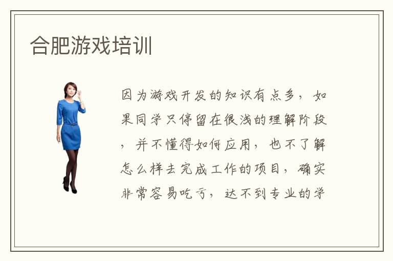 因为游戏开发的知识有点多,如果同学只停留在很浅的理解阶段,并不懂得如何应用,也不了解怎么样去完成工作的项目,确实非常容易吃亏,达不到专业的学习标准。有一些同学早就知道自己的问题,但找不到适合的改善方案,许多情况下都很担心自己的成绩不够好。合肥游戏培训,游戏培训要多少报名费,大概要花5000元到9000元,收费标准是一个大概的范围,因为报名的课程并不相同,如果选择简单的课程,学习时间较短,培训费用就会比较低。但如果选高难度课程,费用就会提高。游戏辅导班怎么样挑选,游戏辅导班的挑选过程中,要考虑的是教学质量,培训内容以及老师的专业水平等等。假如同学没有专业老师的指导,课程质量不高,即便投入许多时间,还是掌握不了。