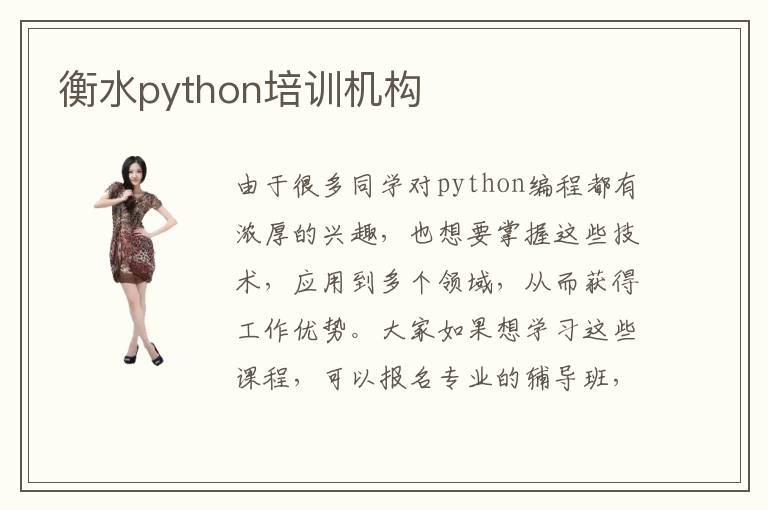 由于很多同学对python编程都有浓厚的兴趣,也想要掌握这些技术,应用到多个领域,从而获得工作优势。大家如果想学习这些课程,可以报名专业的辅导班,由老师来安排课程,从而取得更多进步。衡水python培训机构往往可以分享许多专业方面的学习经验,制定严谨的训练项目。而且在整个培训过程中,还会通过趣味性教学的方式,展示许多复杂的技术,学生可以感受到学习的乐趣,也更有动力学习下去。python培训机构教学质量相当高,一方面是老师会手把手教学,解答各种专业的疑惑,也会挖掘学员在学习和工作方面的不足。python工程师的发展趋势相当好,首先就是行业的需求量非常大,但是每年都有大量的毕业生,导致就业过程的竞争压力越来越大,所以大家要多训练。