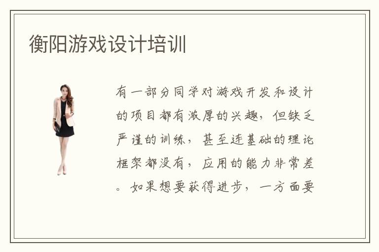 有一部分同学对游戏开发和设计的项目都有浓厚的兴趣,但缺乏严谨的训练,甚至连基础的理论框架都没有,应用的能力非常差。如果想要获得进步,一方面要多花时间,积累重要的知识,另一方面也可以参加衡阳游戏设计培训,有老师介绍多种重要的课程,迅速挖掘新的技术领域。游戏设计培训小班授课有特别强的针对性,老师会提供手把手教学,为同学指引方向,而且老师还可以及时调整同学们的节奏以及学习状态,让大家更快适应培训班的课程。游戏设计行业找工作简单吗,游戏行业找工作并不难,技术人员可以选择多种岗位,如软件开发工程师,游戏前端设计专员,游戏后端服务人员。由于现在的待遇也不错,导致许多技术人员也开始转向游戏行业,所以大家要面临比较大的竞争压力。