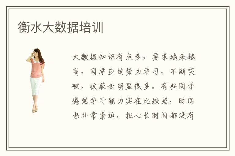 大数据知识有点多,要求越来越高,同学应该努力学习,不断突破,收获会明显很多。有些同学感觉学习能力实在比较差,时间也非常紧迫,担心长时间都没有收获。衡水大数据培训学校会帮助同学解决这些问题,带来许多高效率的辅导方案,使大家进步更明显。大数据培训有用吗,多数大数据分析辅导班都有很不错的好处,一方面就是这些学校的指导能力非常强,培训思维也非常丰富。另一方面是可以结合同学的能力安排多种课程,若学员感兴趣,可以报名这样的课程,从而获得更多优势。大数据行业有没有发展前景,大数据行业有很不错的发展前途,因为技术员可以得到很好的月薪,发展机会也很多,都有很大的表现舞台,只要个人的技能很强,也能完成很多工作任务,往往会有突出的表现。