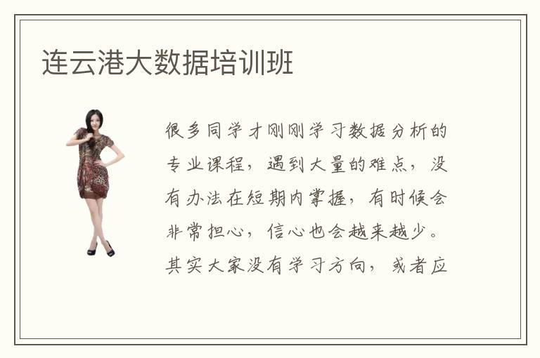 很多同学才刚刚学习数据分析的专业课程,遇到大量的难点,没有办法在短期内掌握,有时候会非常担心,信心也会越来越少。其实大家没有学习方向,或者应用能力不够强的时候,都可以报名连云港大数据培训大数据培训班,因为老师会把很多数据分析理论和应用的项目介绍给大家,使得每一位学员达到工作的标准。大数据培训班网络指导有好多优势,比如地点不用受到限制,大家可以随时安排上课的时间,打开电脑就可以学习。而且在互联网上课,大家有自由的交流,这样有问题可以马上解决,从而让学习效率更高。大数据应用领域主要有哪些,大数据应用的领域有数据库管理,数据库的设计,数据库服务器应用等等,刚开始接触可能会有一点点难,大家要多投入精力和时间,认真理解各种要求。