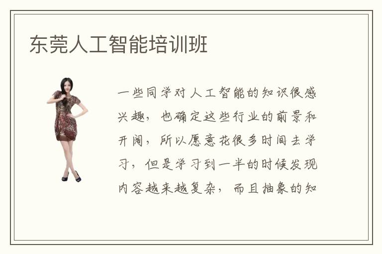 一些同学对人工智能的知识很感兴趣,也确定这些行业的前景和开阔,所以愿意花很多时间去学习,但是学习到一半的时候发现内容越来越复杂,而且抽象的知识点实在太多,通过自己的自学很难掌握。面对这些情况,有很多种解决方法,其中一种就是报名东莞人工智能培训人工智能培训班。人工智能培训班大概要多久,大概的学习时间是三个月到半年,其实部分同学的基础很差,可以先学习入门级的人工智能课程,难度较低,学习时间较短,然后再一步步积累信心,继续学习高难度的ai课程。人工智能辅导机构的师资水平非常关键,大家在筛选的过程中,可以多多对比每一个辅导班老师的专业能力,如果老师的水平很高,而且辅导的速度很快,也有认真的态度,口碑相当不错,当然值得大家选择。