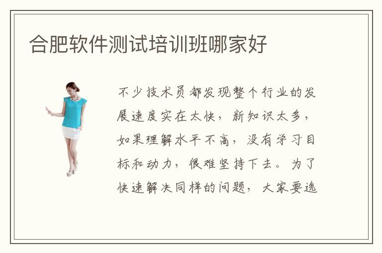 不少技术员都发现整个行业的发展速度实在太快,新知识太多,如果理解水平不高,没有学习目标和动力,很难坚持下去。为了快速解决同样的问题,大家要选择合适的方法,包括确定好合肥软件测试培训班哪家好后,报名辅导班,把重要的课程掌握,这样就不用害怕技术不如他人。软件测试辅导学校的实力往往很强,有多年经验,了解同学的学习现状和基础掌握效果,然后安排相关的课程,让同学们打开思路,得到很多训练机会。有些技术会比较难,但是大家可从实际出发,找到很多学习方法,得到更多的进展。软件测试工程师年薪多少钱,软件测试工程师的年薪往往在40万到90万元,因为大家的水平不是完全一样,工作价值以及发展空间也不同,所以会影响到待遇。
