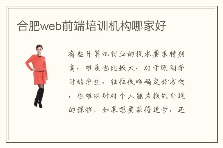 有些计算机行业的技术要求特别高,难度也比较大,对于刚刚学习的学生,往往很难确定好方向,也难以针对个人能力找到合适的课程。如果想要获得进步,还是要多积累经验,了解合肥web前端培训机构哪家好,选择机构的一些相关课程。web前端培训班入门教学有多种好处,比如同学能针对自己的基础薄弱环节,选择合适的强化训练项目,得到更好的提升,基本功也会更扎实。其次,老师会着重安排各种辅导方案,无论是理论辅导,还是应用辅导,同学都能收获很多。web前端技术员有前途吗,网页前端技术员其实很有前途,可以从事很多种工作,比如网页前端开发,网页设计,操作系统应用,网页,爬虫,自动化运维等。遇到一些难度较高的技术很正常,大家不要放弃,要认真学习。