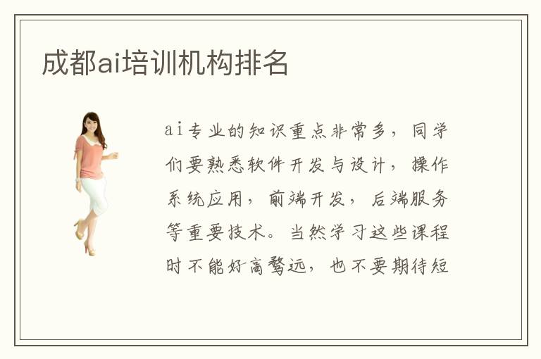 ai专业的知识重点非常多,同学们要熟悉软件开发与设计,操作系统应用,前端开发,后端服务等重要技术。当然学习这些课程时不能好高骛远,也不要期待短期内掌握,而是要有明确的方向和长期的计划。要是有报班的想法,可以看看成都ai培训机构排名,争取找到更有保障的培训学校。ai辅导班老师水平高不高,多数老师水平都非常高,一方面就是学历不错,工作经验丰富,另一方面也有非常多教学的方案,让大家集中注意力,快速理解重要知识,而且针对同学的不足,找到合适的课程,从而提高学习的成绩。有的同学在学习期间总是会遇到难题,但是不要担心,老师会1对1指导。ai技术员找工作简单吗,找工作没有太多难度,只不过有些同学没有深层了解自己的不足,应用时会遇到很多障碍。