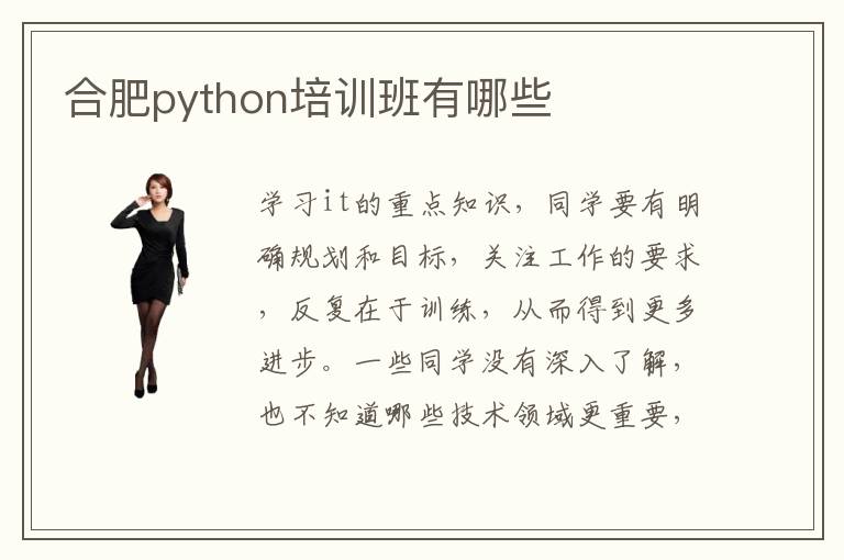 学习it的重点知识,同学要有明确规划和目标,关注工作的要求,反复在于训练,从而得到更多进步。一些同学没有深入了解,也不知道哪些技术领域更重要,因此投入很长时间,依然一无所获,常常感到很茫然。这时看一看合肥python培训班有哪些,找到自己较为满意的机构。python技术培训班学费要多少钱,其实每个学校的要求,培训重点,培训时间都不同,所以学费有差异。大家可以先对比,了解自己的问题,然后找到合适的项目,再确定具体的费用。另外,不管选择哪些课程,了解python工程师的技术要求,都要深入浅出,不要盲目判断。如果成绩不是很好,或者在软件开发以及互联网应用等等方面的水平不够高,都要主动找到问题所在,然后一步步解决。