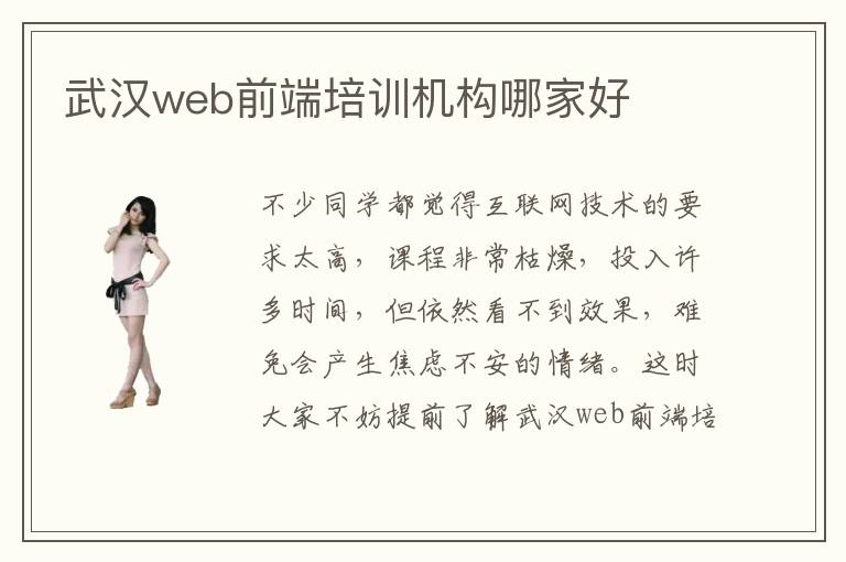 不少同学都觉得互联网技术的要求太高,课程非常枯燥,投入许多时间,但依然看不到效果,难免会产生焦虑不安的情绪。这时大家不妨提前了解武汉web前端培训web前端培训机构哪家好,找到靠谱的机构,请教辅导老师。一般老师都有严格的训练方案,可以增强同学的分析能力和理解能力。web前端补习机构1对1教学有很重要的作用,首先同学们在学习期间可能会面对效率不够高,方向不明确,重点不够突出等等问题,但老师会针对学生的学习状况,找到可能存在的原因,然后提供个性化课程,这样同学就能快速弥补自身的不足,丰富知识的储备。web前端报班怎么样,报名学习web前端课程确实比较有帮助,一方面是效率高,另一方面就是课程清晰,大家有清晰的重点,掌握效果会好一点。