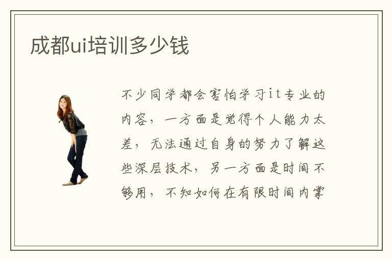 不少同学都会害怕学习it专业的内容,一方面是觉得个人能力太差,无法通过自身的努力了解这些深层技术,另一方面是时间不够用,不知如何在有限时间内掌握这些知识。为了解决这些问题,同学可多了解成都ui培训多少钱,报名高质量的it教育机构。ui辅导学校辅导方法有哪些,有1对1的课程,小班课程,网络指导课程,一些同学觉得大班课程的效果不太好,效率非常低,因此需要选择小班教学。主要是由于这些小班课程的针对性强,效率特别高,一个班级大概是两个人到9个人,但是老师会结合大家的特点以及学习状态,安排个性化的训练,真正做到因材施教。Ui技术工程师要学什么课程,ui要学习的课程项目较多,比如界面设计,前端服务,网页优化,操作系统应用。如果理解深度不够,要多花时间练习。
