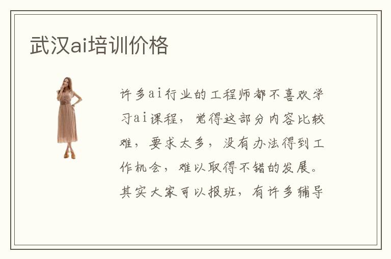 许多ai行业的工程师都不喜欢学习ai课程,觉得这部分内容比较难,要求太多,没有办法得到工作机会,难以取得不错的发展。其实大家可以报班,有许多辅导课程,让大家对这些行业有更加深刻的理解,熟悉掌握各种应用的流程。不过需要注意,机构的教学效果不同,导致武汉ai培训价格也会有波动。ai辅导学校有哪些选择方法,挑选优质机构,当然可以先辅导老师的水平,然后再确定这些学校的教学质量,保证更好的成果。刚开始学习,很多同学不懂得哪些是重点,也没有任何学习方向,因此学习过程很迷茫,但是老师会将问题找出 ,一步步解决。ai工程师晋升容易吗,人工智能工程师行业机会多,而且晋升空间也很大,所以很多人学习以后,可以找到更好的工作。