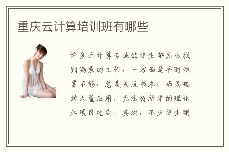 许多云计算专业的学生都无法找到满意的工作,一方面是平时积累不够,总是关注书本,而忽略掉大量应用,无法将所学的理论和项目结合。其次,不少学生刚刚开始学习,连基本框架都没有,学习质量也会受到不小影响。如果能提前知道重庆云计算培训班有哪些,选择值得信赖的机构,应该可以改善问题。云计算教育机构有哪些主要课程,许多教学机构的核心课程都非常明确,无论是基础课程,案例分析课程,专业应用技术课程,都可谓应有尽有。只要学生想学习一些专业的重点知识,老师都会提供,使大家达到云计算工作要求,水平越来越突出。不过现在云计算工作方向比较多,比如云计算运维,云计算操作,云计算测试,Linux操作系统,虚拟化技术等等,学生要掌握的课程实在很多。