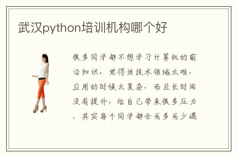 很多同学都不想学习计算机的前沿知识,觉得该技术领域太难,应用的时候太复杂,而且长时间没有提升,给自己带来很多压力。其实每个同学都会或多或少遇到各种障碍,但有部分同学会通过报班的方法正面应对,而且及时解决,成绩会比别人更好。大家要确定好自己需要学习的课程,然后再分析不同机构的擅长领域,从而确定武汉python培训机构哪个好。python课外培训班哪些好,应该从教学质量,教学方向等等重要的因素加以权衡,有些学校的授课质量很高,培训思路清晰,课程十分严谨,对同学帮助很大,同学收获也比较理想。但也有部分学校的内容不够全面,课程重点不够突出,同学收获也很少,大家不要随便考虑。Python课程有哪些,主要有基本的语法知识,应用规则,应用领域等等。