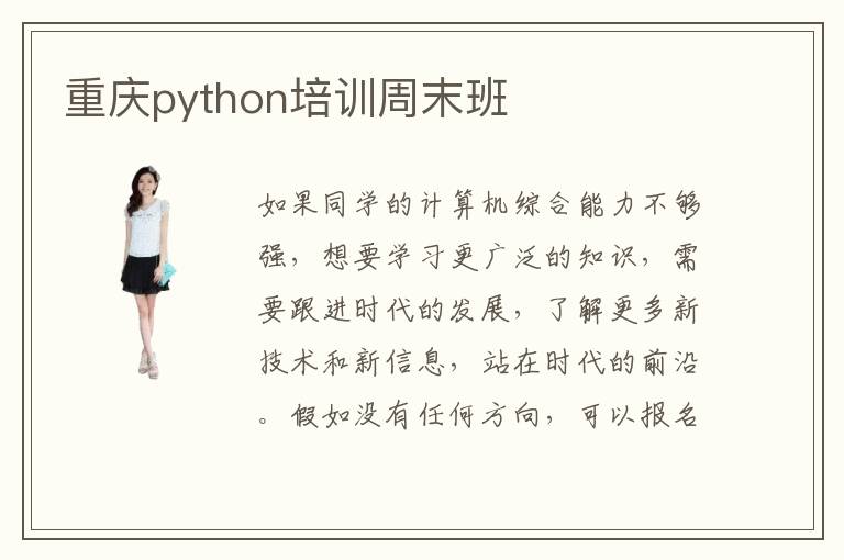 如果同学的计算机综合能力不够强,想要学习更广泛的知识,需要跟进时代的发展,了解更多新技术和新信息,站在时代的前沿。假如没有任何方向,可以报名重庆python培训周末班,因为辅导班的老师会有较强的能力,通过清晰的思路,讲解这些知识。python辅导班课程难度高不高,多数辅导机构的课程难度都不算高,老师可开展许多项目,分享大量的经验。若学生在某一些阶段出现不懂的问题,老师可以进行适当的安排,打开学生的视野,得到更多收获,又不用担心效率低或者成绩不好等等问题。python工程师工作压力大不大,python工程师的工作压力会逐渐变大,因为这些领域的发展很迅速,人才也越来越多,企业的要求也在上升。如没有更新自己的知识库,短期内可能会被淘汰。
