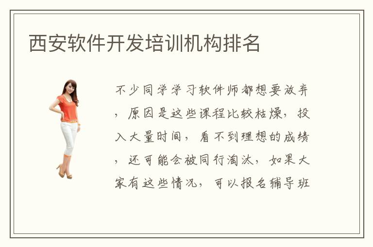 不少同学学习软件师都想要放弃,原因是这些课程比较枯燥,投入大量时间,看不到理想的成绩,还可能会被同行淘汰,如果大家有这些情况,可以报名辅导班,因为老师有多年经验,了解大家的问题,然后通过多种训练方式,让同学的理解能力和专业应用能力都更强,也能达到预期的标准。但挑选时,还是要看看西安软件开发培训机构排名,找到综合实力更好的机构。软件开发技术培训班有实践教学吗,多数教学机构的实践课程比例都特别高,也会强化同学的专业理解和分析能力,对整个行业的发展动态以及实践应用都有深入的研究。刚刚开始学习,大家基础不是很好,存在大量学习疑问,不用灰心,老师会及时解决,让学员的知识体系更完整,技术能力更强,完成更多软件开发工程师的任务。