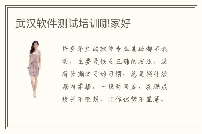 许多学生的软件专业基础都不扎实,主要是缺乏正确的方法,没有长期学习的习惯,总是期待短期内掌握,一段时间后,发现成绩并不理想,工作优势不显著。大家可分析一下原因,找到针对性的学习方法,适当提高学习质量。武汉软件测试培训哪家好,主要看一下学校的师资,课程类型,同学的口碑,不是每个人都一样。软件测试培训班收费贵吗,很多学校的收费不固定,因为大家报名的课程以及学习方法,学习项目等等不一样。选择这些课程的时候,还是要多多对比,根据实际情况进行调整,这样效率也许更高,也有更多的收获。如果盲目选择,找到自己不太需要的课程,其实会影响障碍的进展。软件测试工程师需要学习什么内容,主要学习的内容有软件开发与功能设计,软件检测等等。