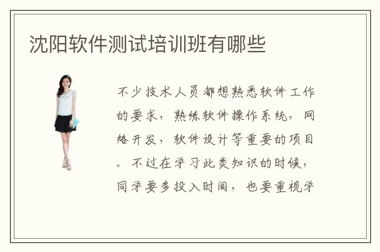 不少技术人员都想熟悉软件工作的要求,熟练软件操作系统,网络开发,软件设计等重要的项目。不过在学习此类知识的时候,同学要多投入时间,也要重视学习方法,找到合适的突破口,争取更多的改善。包括确定好沈阳软件测试培训班有哪些,从中找到更靠谱的机构。软件测试辅导班收费高吗,对于多数学生来说,机构的收费比较适中,比如有些入门级的项目,费用范围可能是3600元到7200元。但若课程难度较大,培训时间比较长,收费可能会提高。如果想学习更多新内容,大家还是要认真整理好问题,找到学习的方向,不要过度被动。软件测试入门快吗,入门软件测试的技术不算难,学习的时间也比较短。但如果只是自学,没有很强的理解能力,可能会走很多弯路。